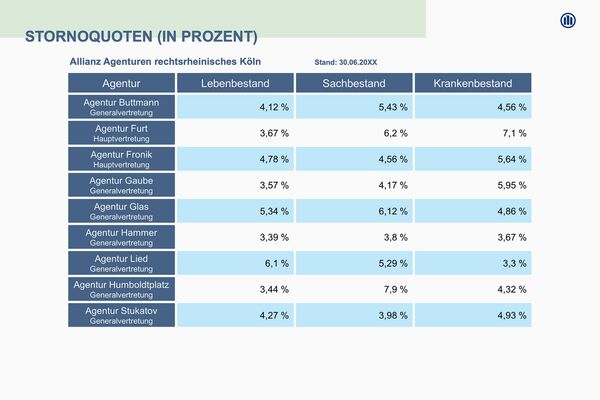 Stornoquote Allianz Agenturen rechtsrheinisches Köln
